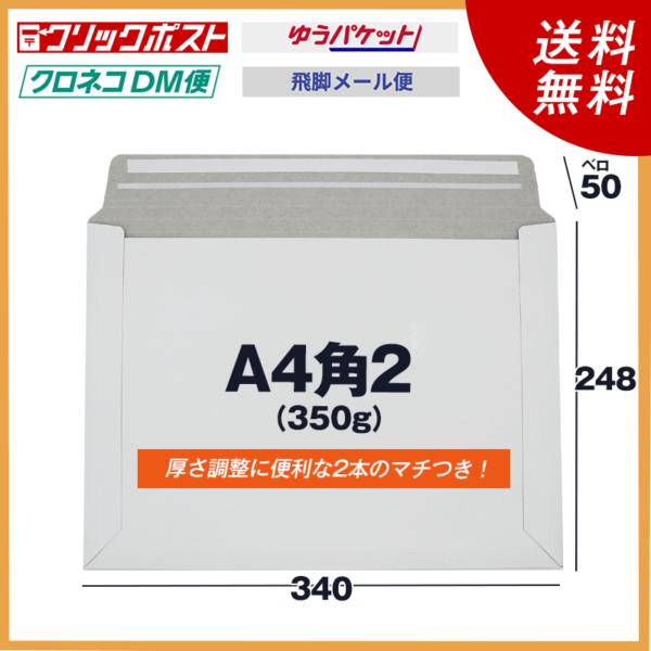 そのほか西濃運輸・福山通運・中越運送他、各種メール便サービスに対応した厚紙封筒です。